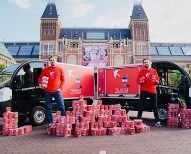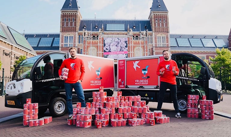 Every year on May 5th, we celebrate our national freedom in the Netherlands. Traditionally on this day, Vrijheidsmaaltijden (freedom meals) are held throughout the Netherlands: from small to large and from a quick bite to a three-course meal. But when in 2020 Covid hit, this was not possible. So that year, together with the Amsterdam 4th and 5th May committee - Food Cabinet developed a great alternative: de Vrijheidsmaaltijdsoep (the Freedom Soup). The cans of soup, which allowed you to eat together but from a distance, became such a success that we went all over the country the following years. From Leeuwarden to Maastricht, we all ate the same delicious soup on May 5th, delivered to all citizens, in a beautiful iconic can designed by Piet Parra.